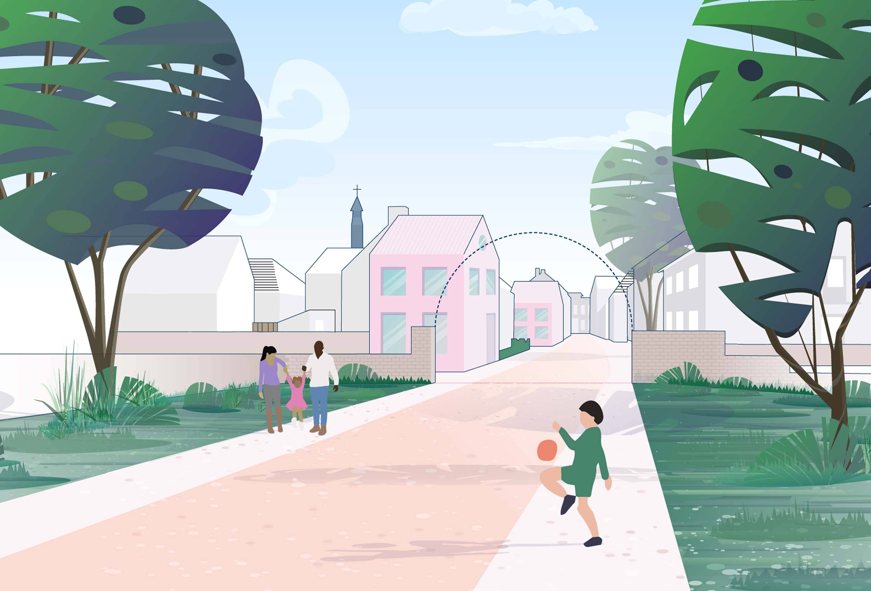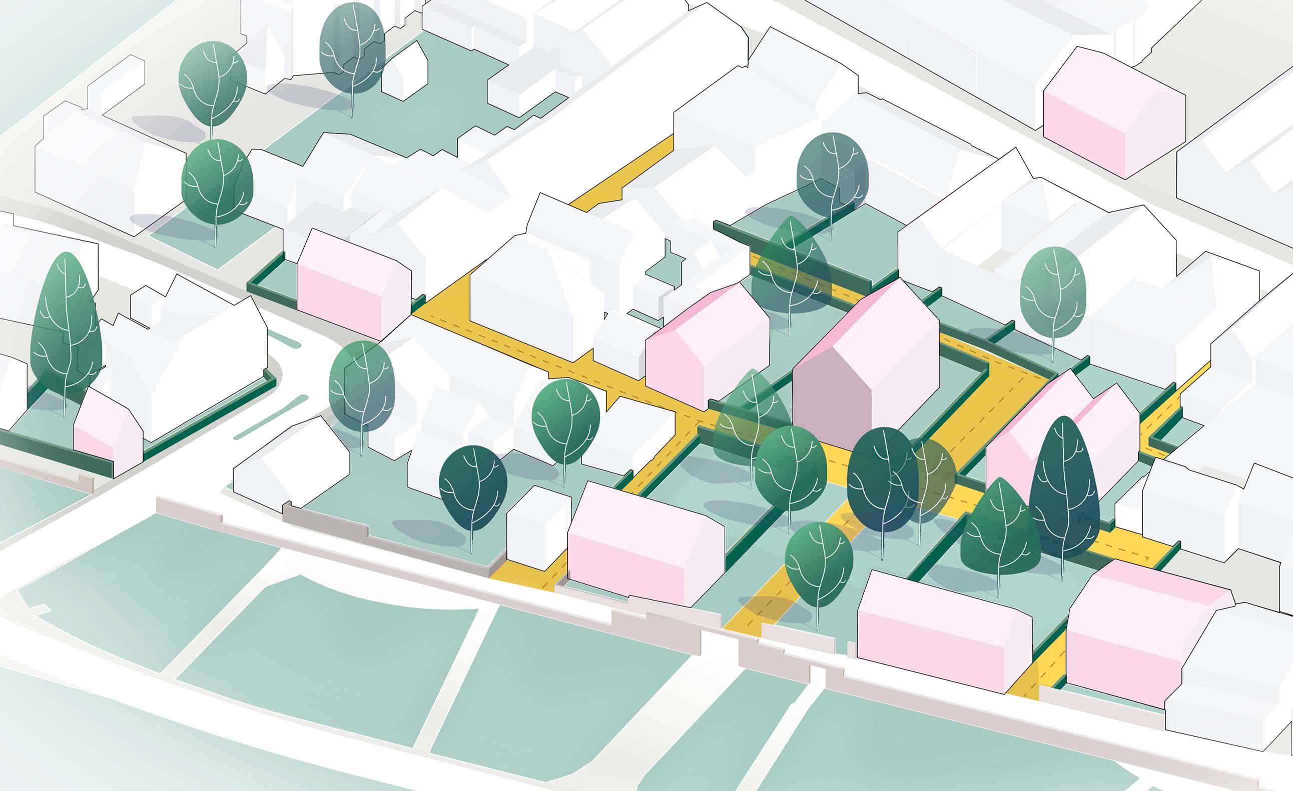 Clustering parking in the outer ring around the town centre creates space for urban transformation, allowing the urban fabric to make a qualitative leap.