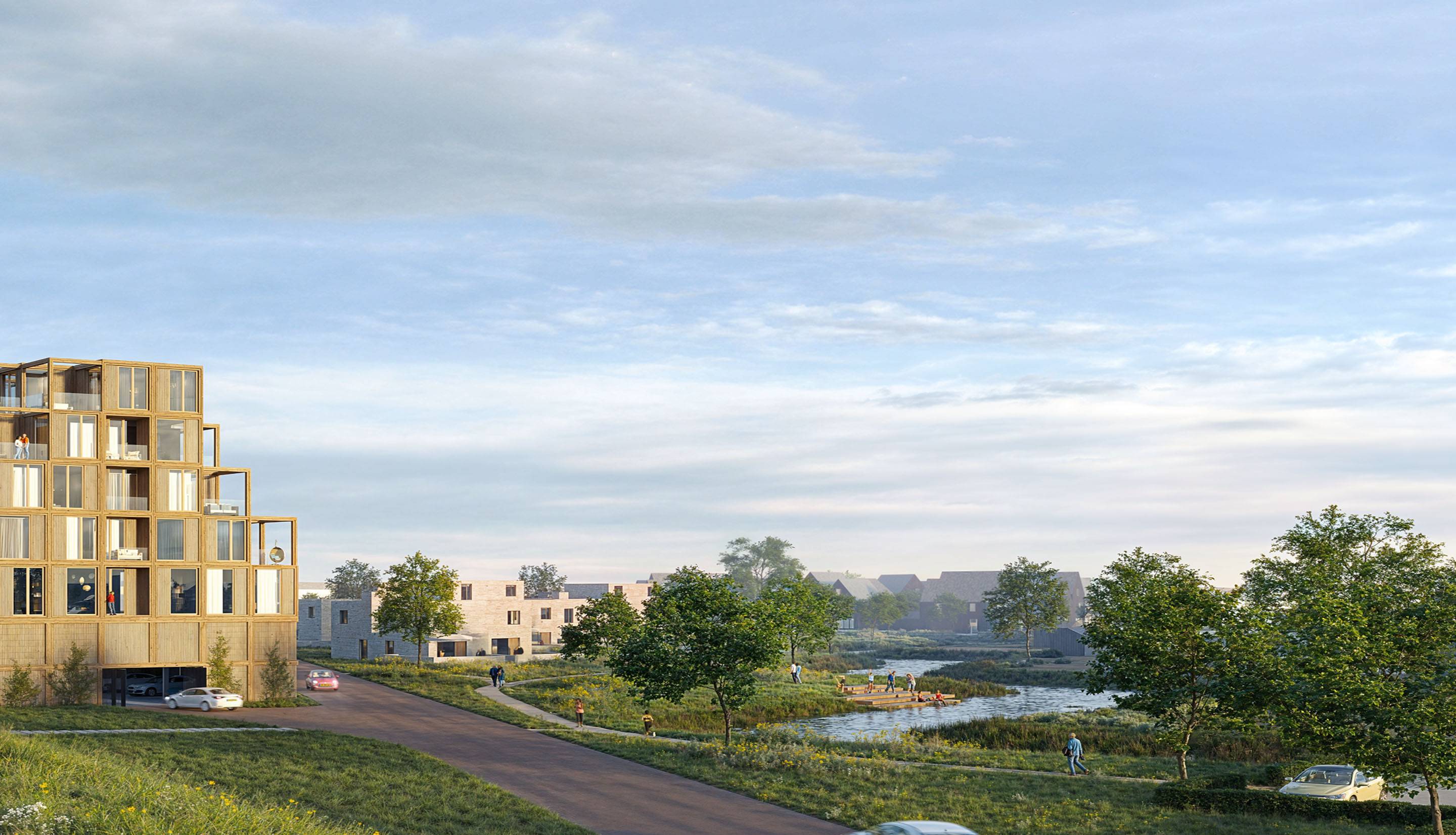 Het centraal gelegen amfitheater is omgeven door een groene bufferzone met openingen naar omliggende straten, wat zorgt voor optimale looplijnen.