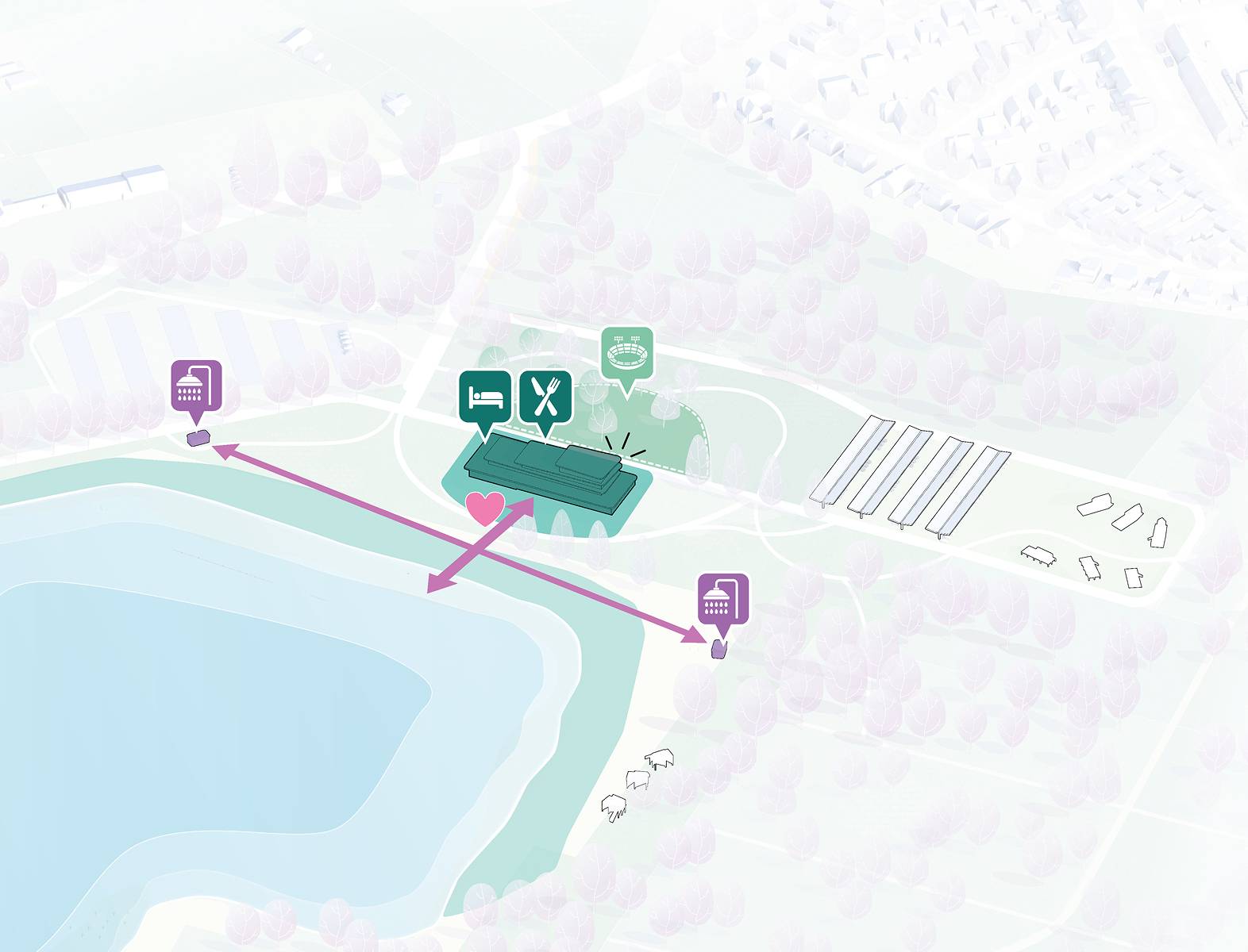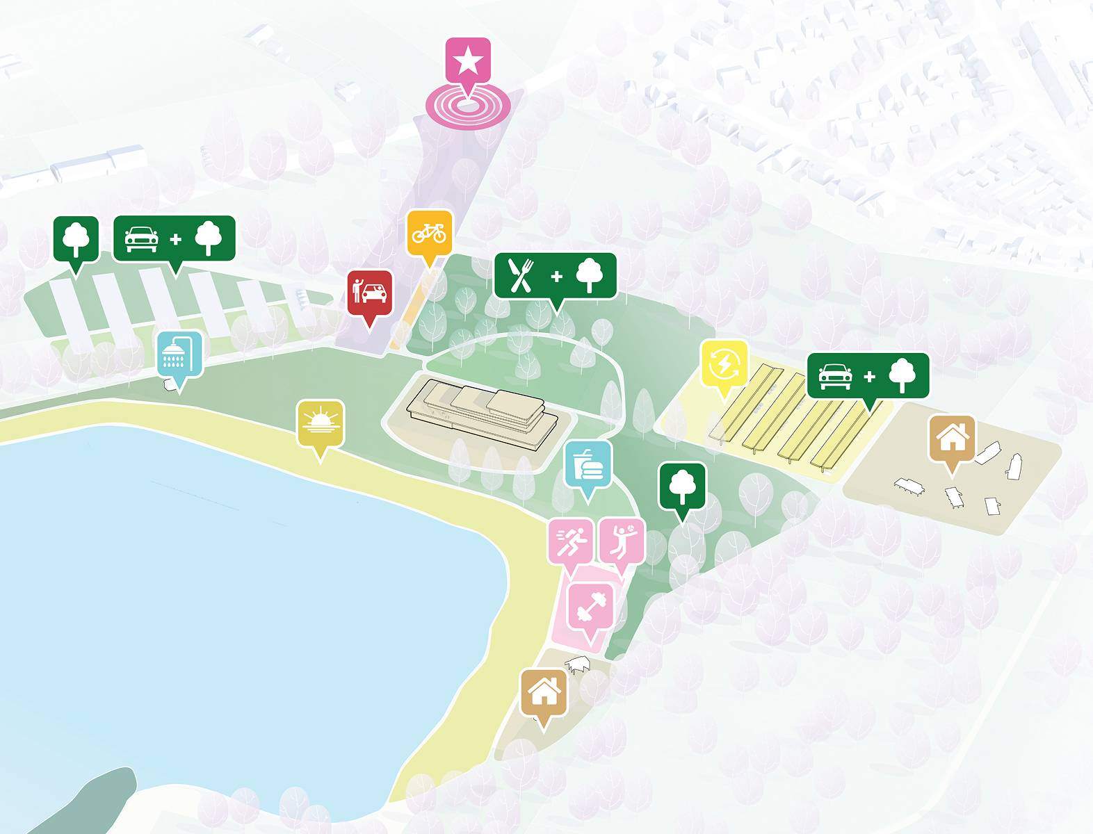 Dit recreatiegebied is doordacht ontworpen om een unieke en mooie buitenervaring te bieden.