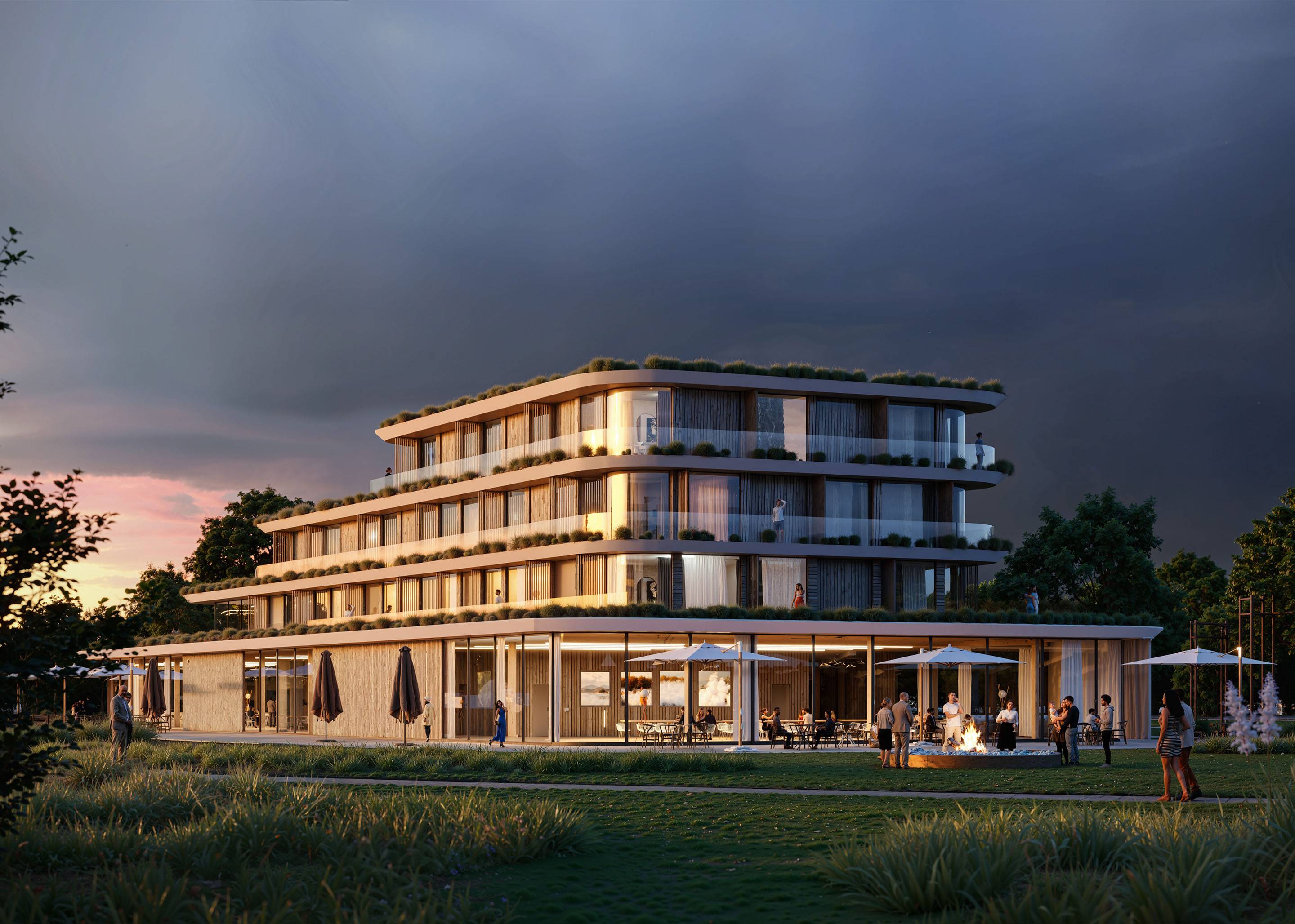 Het nieuwe hoofdgebouw zal onderdak bieden aan verschillende voorzieningen, zoals een restaurant, evenementenhal, kinderdagverblijf en een hotel. Dit zorgt voor een levendig programma gedurende de dag en avond.